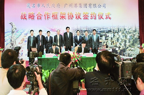 茂名市領(lǐng)導(dǎo)鄧海光、梁毅民、劉毅,廣州港集團董事長、黨委書記陳洪先出席簽約儀式 廣州港集團此次與茂名市成功合作,不僅是貫徹落實廣州市委、市政府對茂名等地區(qū)扶貧開發(fā)“雙到”和產(chǎn)業(yè)勞動力“雙轉(zhuǎn)移”工作精神的具體內(nèi)容,也因為茂名石油化工行業(yè)發(fā)達(dá),港口資源豐富、地區(qū)經(jīng)濟增長潛力巨大等條件,合作空間廣闊。茂名緊鄰珠三角西側(cè),離廣州直線距離約300公里,其正在開發(fā)的深水港區(qū)位于茂名東南部的博賀灣,區(qū)位優(yōu)越,擁有水深條件良好、回淤少、維護(hù)成本低的天然建港條件。該港區(qū)未來將以油氣、大宗散貨接卸、集裝箱運輸為主,規(guī)劃中的30萬噸固定式原油碼頭泊位、20萬噸礦石碼頭、10萬噸通用碼頭及8萬噸液體化工碼頭等項目均在此布局。 目前,茂名市正在重點推進(jìn)茂名港博賀新港區(qū)的集疏運體系建設(shè),茂名港總體規(guī)劃修編將于上半年完成,博賀新港區(qū)30萬噸級航道及防波堤工程前期工作已經(jīng)啟動,廣東粵電博賀煤電有限公司10噸級煤碳碼頭項目將于今年上半年開建,中化集團液體化工碼頭、中海油天然氣碼頭、中國港灣集團8萬噸級液體化工項目等一批港口項目也將年內(nèi)啟動。茂名市政府與廣州港集團此次的成功合作,對茂名正在如火如涂進(jìn)行的深水港口建設(shè)來說,無疑是如虎添翼。