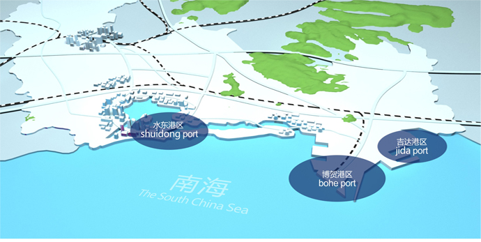 The Three Harbors of Maoming Port