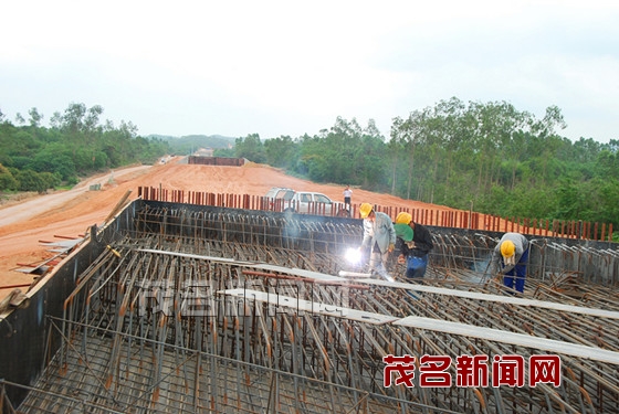 昨日上午,記者來(lái)到陽(yáng)西新圩與電白望夫相接的施工現(xiàn)場(chǎng),工人們有的在鋪大橋鋼筋,有的在焊接縫隙,有的在整理路基,施工現(xiàn)場(chǎng)熱火朝天。在望夫境內(nèi)放眼望去,路基面已基本成型。長(zhǎng)達(dá)500多米的橫跨望夫河的特大橋,已用鋼板牢牢地筑好了施工通道,其旁邊有多臺(tái)沖樁機(jī)開(kāi)動(dòng)沖錘施工。工人說(shuō),將抓緊好天氣時(shí)機(jī),加快推進(jìn)施工進(jìn)度。