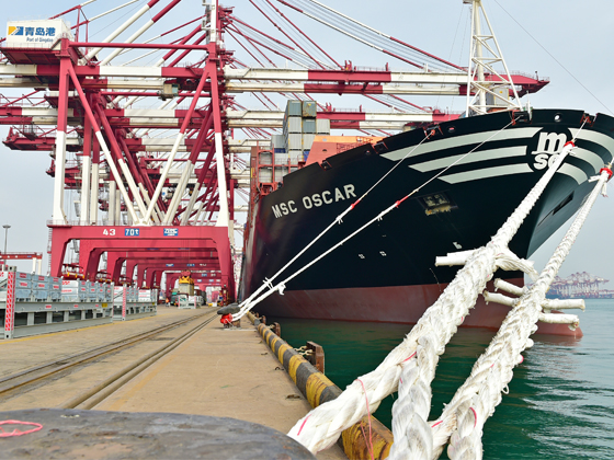 1月28日20時(shí)20分,全球最大、最先進(jìn)、最大載箱量19224TEU的“地中海奧斯卡”輪靠泊QQCT碼頭。該輪是今年1月份地中海航運(yùn)公司下水的新船,船長(zhǎng)395.4米,型寬59米,吃水-16米,載箱量19224TEU、載重噸為197362噸,打破了2014年12月4日靠泊青島港的“中海環(huán)球”輪創(chuàng)造的1.91萬(wàn)TEU載箱量的紀(jì)錄。 “地中海奧斯卡”輪主要經(jīng)營(yíng)由馬士基航運(yùn)和地中海航運(yùn)共同打造的“2M聯(lián)盟”歐洲線,沿途將掛靠釜山、青島、寧波、鹿特丹、蘇伊士運(yùn)河等21個(gè)港口!暗刂泻W斯卡”該輪此次在QQCT裝卸箱量達(dá)5697TEU,這是青島港深入推進(jìn)船公司總部戰(zhàn)略拉動(dòng)增線上量的又一成果。作業(yè)中QQCT科學(xué)安排泊位、堆場(chǎng),全力做好機(jī)械保障,精心組織生產(chǎn),實(shí)現(xiàn)了船時(shí)效率180自然箱/小時(shí)的高效率。