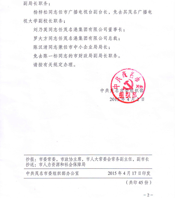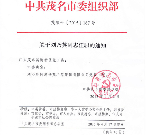 市委決定:劉乃英任集團(tuán)公司黨委書記、董事長 羅大方任集團(tuán)公司總裁