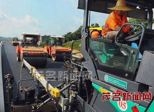 (包茂高速公路施工單位利用好天氣抓緊施工,加速工程進(jìn)展。圖為高州泗水路段在鋪設(shè)