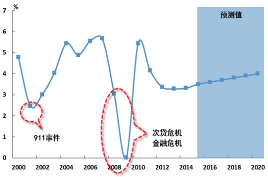 來源:中國遠(yuǎn)洋航務(wù) 預(yù)計(jì)“十三五”期間世界經(jīng)濟(jì)和貿(mào)易的增速分別為3.8%和4.7%,世界貿(mào)易相對經(jīng)濟(jì)的彈性系數(shù)由1.48降至1.25水平,海運(yùn)需求增速也將相應(yīng)減緩。“走出去”發(fā)展將使我國海運(yùn)需求由原來的放射結(jié)構(gòu),轉(zhuǎn)向全球網(wǎng)絡(luò)化結(jié)構(gòu);同時(shí)針對“走出去”面臨各種風(fēng)險(xiǎn),要求海運(yùn)在應(yīng)對突發(fā)事件中更好地發(fā)揮支持保障作用。 世界經(jīng)貿(mào)發(fā)展環(huán)境變化 1. 全球經(jīng)貿(mào)增速放緩,區(qū)域和國家增長分化。 世界經(jīng)貿(mào)將保持低速穩(wěn)定,貿(mào)易彈性系數(shù)下降。圖1顯示了2000年以來世界經(jīng)濟(jì)增速的變化,可以看出,突發(fā)事件的影響相對短暫和局部,而經(jīng)濟(jì)發(fā)展自身問題影響長遠(yuǎn),波及范圍更加廣泛。受到9·11事件影響,2011年世界經(jīng)濟(jì)增速一度有所下滑,但很快恢復(fù),2000-2007年保持了年均4.4%的較快增長。同期,世界貿(mào)易年均增長6.5%,相對于經(jīng)濟(jì)增長的彈性系數(shù)為1.48。美國次貸危機(jī)、金融危機(jī)和歐洲債務(wù)危機(jī)是發(fā)達(dá)國家長期積累問題的集中暴露,對世界經(jīng)貿(mào)發(fā)展造成嚴(yán)重的沖擊,2008年、2009年世界經(jīng)濟(jì)和貿(mào)易出現(xiàn)嚴(yán)重下滑,2010年雖出現(xiàn)恢復(fù)性增長,但受歐債危機(jī)持續(xù)、各種貿(mào)易保護(hù)措施和地緣政治等多種復(fù)雜因素影響,當(dāng)前世界經(jīng)濟(jì)和貿(mào)易的增長面臨諸多不確定性,出現(xiàn)增速緩慢、穩(wěn)定的新態(tài)勢。從未來幾年發(fā)展看,根據(jù)IMF預(yù)測,未來世界經(jīng)貿(mào)速度將進(jìn)入低速但相對穩(wěn)定的狀態(tài),貿(mào)易增速下降更為明顯。預(yù)計(jì)“十三五”期間世界經(jīng)濟(jì)和貿(mào)易的增速分別為3.8%和4.7%,世界貿(mào)易相對經(jīng)濟(jì)的彈性系數(shù)由1.48降至1.25水平,海運(yùn)需求增速也將相應(yīng)減緩。