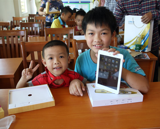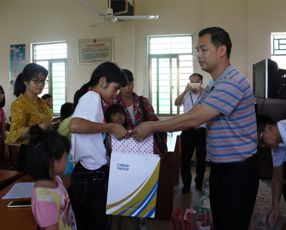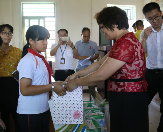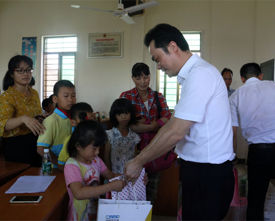 廣東通校科教電子有限公司總經(jīng)理張偉清為貧困兒童派送禮物