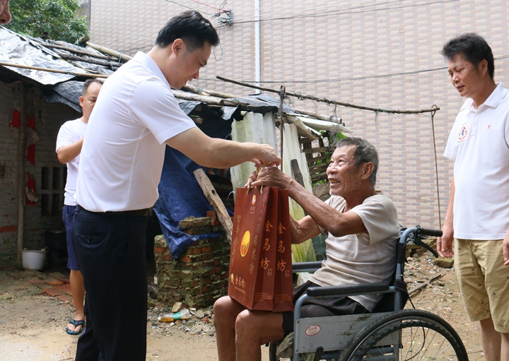 慰問組一行首先來到博賀村委會(huì),向前來的扶貧戶通報(bào)了扶貧工作組近期的工作情況,致以節(jié)日和問候和祝福,并送上節(jié)日禮品。隨后,慰問組進(jìn)村入戶,走訪慰問了行動(dòng)不便的貧困戶,并向他們送上慰問品和問候。每到一處,肖炳璋與貧困戶親切交談,親切了解其生活狀況及困難,鼓勵(lì)他們樂觀面對生活,堅(jiān)定在黨和政府的關(guān)懷下脫貧脫困的信心,并囑咐集團(tuán)精準(zhǔn)扶貧工作小組人員結(jié)合實(shí)際,配合當(dāng)?shù)卮逦,針對不同貧困戶的具體情況,因地制宜、因人施策開展好扶貧工作,結(jié)合上級部門有關(guān)優(yōu)惠幫扶政策,切實(shí)解決他們生活中的實(shí)際困難,確保貧困戶過好國慶及中秋兩個(gè)節(jié)日。