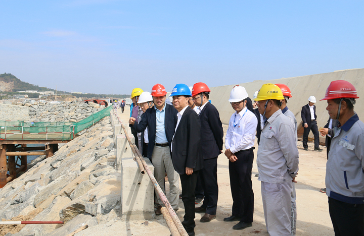 隨后,調(diào)研組一行先后前往10萬噸級成品油碼頭的博賀預(yù)制場及位于東防波堤的項目建設(shè)現(xiàn)場、粵西LNG造陸項目建設(shè)現(xiàn)場,認真聽取各參建單位關(guān)于項目建設(shè)情況的現(xiàn)場匯報,深入詳細了解各重點項目建設(shè)情況。劉乃英強調(diào),集團工程管理板塊各單位要做好年末施工統(tǒng)籌,各參建單位要扎實做好歲末年初的安全生產(chǎn)工作,緊守工程質(zhì)量建設(shè)生命線,著眼茂名打造沿海經(jīng)濟帶上新增長極的工作大局,切實肩負起打造海上能源新通道的歷史使命,確保集團重點項目建設(shè)年度目標按時按質(zhì)完成。