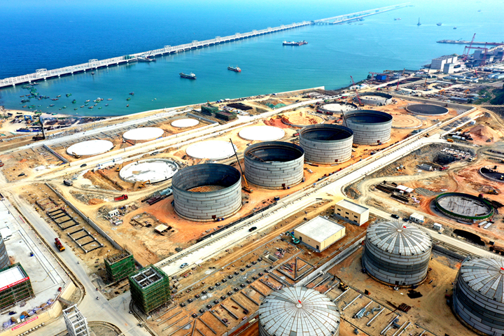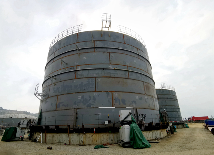 在豐收的季節(jié)里,茂名港博賀新港區(qū)東區(qū)化工倉儲項(xiàng)目建設(shè)進(jìn)度喜人,碩果頻結(jié):該項(xiàng)目已全面進(jìn)入罐體安裝階段,目前共計14臺儲罐主體已經(jīng)安裝完成,儲罐附件及其他罐組儲罐安裝正在如火如荼地進(jìn)行中。