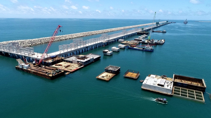 據(jù)悉,集團(tuán)茂名港博賀新港區(qū)東區(qū)油品碼頭工程已具規(guī)模,碼頭沉箱安裝、陸域公用管廊、工作樓及水域面層已完成,水域管廊、管架及工藝管道安裝快速推進(jìn),項(xiàng)目總體進(jìn)度完成92%;