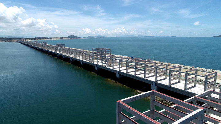 ▲茂名港務(wù)中心項(xiàng)目 在這乘風(fēng)破浪、跨越發(fā)展的十年里,茂名港深水大港崢嶸初現(xiàn),碩果累累——實(shí)現(xiàn)資產(chǎn)規(guī)模和融資規(guī)!半p百”目標(biāo),為濱海新區(qū)基礎(chǔ)設(shè)施建設(shè)和茂名港集團(tuán)發(fā)展提供資金保障,融資平臺(tái)作用凸顯;自建、參建省市重點(diǎn)項(xiàng)目超30個(gè),推動(dòng)博賀新港區(qū)東西防波堤、10萬噸級(jí)成品油碼頭、東區(qū)化工碼頭、東區(qū)化工倉儲(chǔ)、粵西LNG造陸項(xiàng)目、茂名港務(wù)中心、博賀灣大橋、供水工程等一批省市重點(diǎn)項(xiàng)目建設(shè)投用,充分發(fā)揮濱海新區(qū)項(xiàng)目建設(shè)主體作用,加快推進(jìn)口岸開放工作,為茂名經(jīng)濟(jì)實(shí)現(xiàn)高質(zhì)量發(fā)展增添動(dòng)力。 前瞻布局,打造南海能源新通道,積極融入茂名“向海而興”發(fā)展大局。