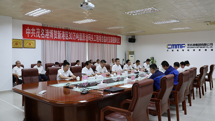 7月1日上午,30萬噸級(jí)原油碼頭“臨時(shí)黨支部”授牌儀式在博賀港區(qū)辦公樓二樓大會(huì)議室舉行,集團(tuán)黨委書記、董事長(zhǎng)王志華,集團(tuán)黨委副書記、總裁肖炳璋,集團(tuán)黨委副書記、常務(wù)副總裁朱廣宇,集團(tuán)黨委委員、副總裁、工會(huì)主席楊超燦,集團(tuán)黨委委員、總工程師蔡光章,集團(tuán)副總裁李昱祺,黨群工作部、項(xiàng)目部黨員代表和施工單位及監(jiān)理單位代表共30多人參加了授牌儀式。