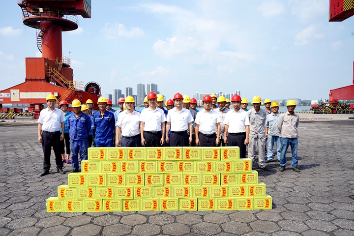 近日,茂名港集團(tuán)黨委副書(shū)記、總裁肖炳璋,茂名港集團(tuán)黨委委員、副總裁、工會(huì)主席楊超燦分別帶隊(duì)到集團(tuán)下屬港口經(jīng)營(yíng)公司碼頭作業(yè)現(xiàn)場(chǎng)、中油王港公司庫(kù)區(qū)、博賀新港區(qū)重點(diǎn)項(xiàng)目施工現(xiàn)場(chǎng)等處“送清涼”,向奮斗在一線(xiàn)的職工傳達(dá)集團(tuán)黨委、集團(tuán)工會(huì)的問(wèn)候與關(guān)懷,并為他們發(fā)放充足的解暑飲料。