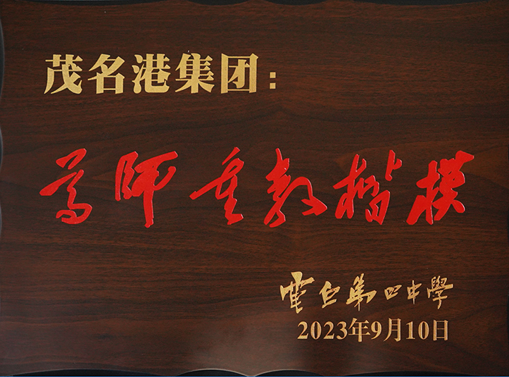 9月27日,茂名市電白第四中學(xué)校長蔣榮昌率領(lǐng)學(xué)校領(lǐng)導(dǎo)班子一行到訪茂名港集團博賀新港區(qū)綜合辦公樓,代表學(xué)校全體師生向茂名港集團贈送“尊師重教楷!迸曝乙约啊白饚熤亟滔冗M單位”榮譽證書,以感謝茂名港集團多年來一直關(guān)心支持濱海新區(qū)教育事業(yè)發(fā)展,為電白第四中學(xué)的教育發(fā)展作出的貢獻。濱?毓晒究偨(jīng)理梁祖釗代表茂名港集團受贈,并感謝電白第四中學(xué)全體師生對茂名港集團的認可。