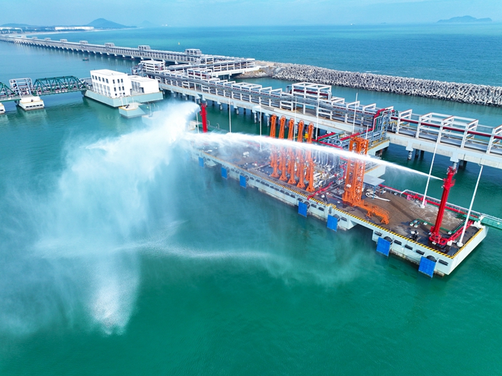2023年12月27日,隨著8條“水龍”噴涌而出,博賀新港區(qū)東區(qū)化工碼頭消防系統(tǒng)聯(lián)運調(diào)試工作取得圓滿成功,這標(biāo)志著繼油品碼頭之后,茂名港集團化工碼頭也完成了由項目建設(shè)轉(zhuǎn)向生產(chǎn)運營的關(guān)鍵一環(huán)。