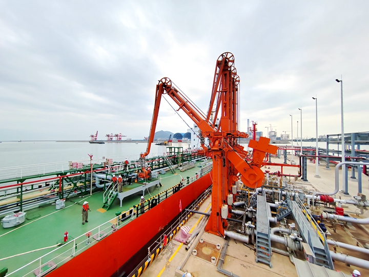 據(jù)悉,“昌利28號”船長137米,船寬19米,最大吃水8.1米,載重11800噸。當(dāng)天13時10分成功靠泊E10號泊位,15時25分成功靠泊E12號泊位。 長興石化公司黨支部高度重視此次試靠泊,船舶到港前,組織專人提前與船方溝通,召開協(xié)調(diào)會,探討分析并制定靠泊方案,從細節(jié)入手,將每一個環(huán)節(jié)落到實處。安排黨員突擊隊隊員對一線班組人員進行靠泊方案培訓(xùn),提前兩天進行桌面推演,確?坎戳鞒倘f無一失?坎催^程中,人員密切配合,通過拉纜、解纜幫助船舶靠岸和離岸,并將登船梯順利放置在船舶甲板上,便于雙方人員通行;成功測試激光輔助靠泊系統(tǒng)和溢油檢測系統(tǒng);成功將輸油臂與船方管道對接并對管道進行氣密性測驗。此次成功靠泊積累了寶貴的生產(chǎn)經(jīng)驗,為后續(xù)正式投產(chǎn)運營打下堅實的基礎(chǔ)。 長興石化公司黨支部將繼續(xù)在茂名港集團黨委的堅強領(lǐng)導(dǎo)下,高舉習(xí)近平新時代中國特色社會主義思想偉大旗幟,繼續(xù)發(fā)揮黨支部戰(zhàn)斗堡壘作用,做到以高質(zhì)量黨建引領(lǐng)生產(chǎn)運營,奮力開創(chuàng)長興石化公司發(fā)展新局面。