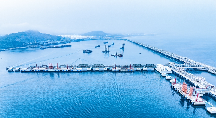茂名港博賀新港區(qū)東區(qū)油品碼頭工程作為省重點建設(shè)項目,是打造南海能源新通道的奠基項目,由茂名港集團有限公司與中國石油化工股份有限公司共同投資建設(shè),總投資規(guī)模龐大,項目建設(shè)一個10萬噸級油品泊位和4384米公用管廊及配套設(shè)施,項目設(shè)計吞吐能力890萬噸/年。茂名港博賀新港區(qū)東區(qū)化工碼頭工程項目由茂名港集團有限公司獨資建設(shè),項目建設(shè)三個1~5萬噸級化工品碼頭泊位及配套設(shè)施,設(shè)計吞吐能力510萬噸/年。集團這兩個重點建設(shè)項目自開工以來,建設(shè)進度和成果一直備受關(guān)注。從“一張白紙”到系統(tǒng)性規(guī)劃到全方位建設(shè),涵蓋了碼頭主體結(jié)構(gòu)、配套設(shè)施、港池疏浚等多個方面,砥礪四年,每一個細節(jié)都凝聚了建設(shè)者們的心血和智慧。