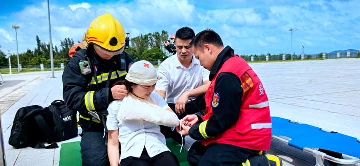 濱海物業(yè)公司聯(lián)合茂名石化北山嶺消防中隊(duì)開展撲滅火災(zāi)及人員疏散演練,處置正確,迅速有效,演練后消防員進(jìn)行心肺復(fù)蘇急救知識(shí)宣講實(shí)踐,有效提高員工應(yīng)急技能