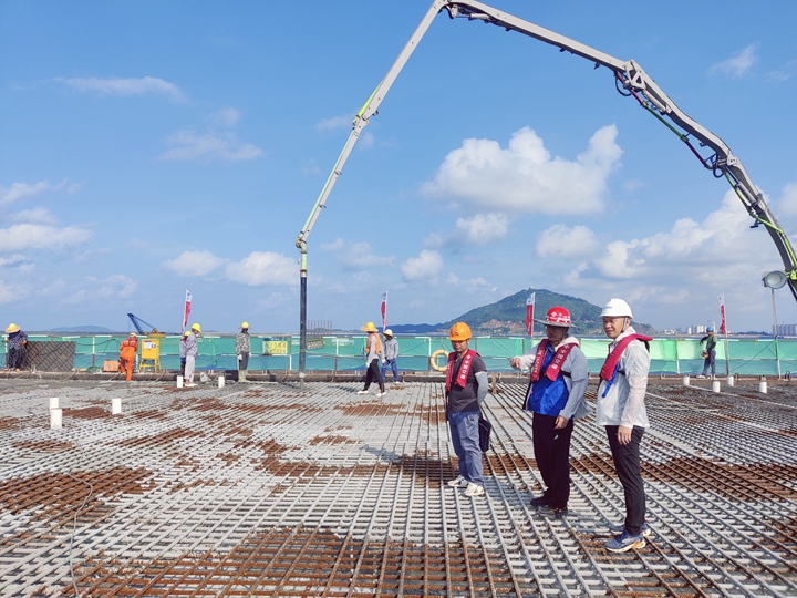 面對復(fù)雜的項目質(zhì)量問題,他從不退縮。他總是冷靜思考,運用自己豐富的經(jīng)驗和專業(yè)知識,迅速找到問題的根源,并制定出切實可行的解決方案。6月18日,30萬噸級原油碼頭項目現(xiàn)場澆筑長48米、寬37米、高2.5米工作樓墩臺大體積混凝土施工,現(xiàn)場巡視和檢查時,他發(fā)現(xiàn)施工單位未按照審批實施方案進行施工,混凝土表觀質(zhì)量出現(xiàn)裂紋和施工冷縫現(xiàn)象。當即,叫來施工技術(shù)人員和專監(jiān),進行查找和分析原因,糾正施工工藝和改進措施,同時總結(jié)經(jīng)驗,優(yōu)化技術(shù),既解決了當前的問題,也為后續(xù)混凝土澆筑提供保障。他堅信,質(zhì)量是項目的生命,任何一點馬虎都可能導(dǎo)致不可挽回的后果。 為了確保項目的高質(zhì)量推進,他不僅注重現(xiàn)場的監(jiān)督和檢查,還積極推動質(zhì)量管理體系的建設(shè)和完善,對重大與典型施工進行全程監(jiān)督管理。他組織培訓(xùn),向團隊成員傳授質(zhì)量管理的方法和技巧,培養(yǎng)和提高大家的質(zhì)量意識,讓質(zhì)量理念深入人心。