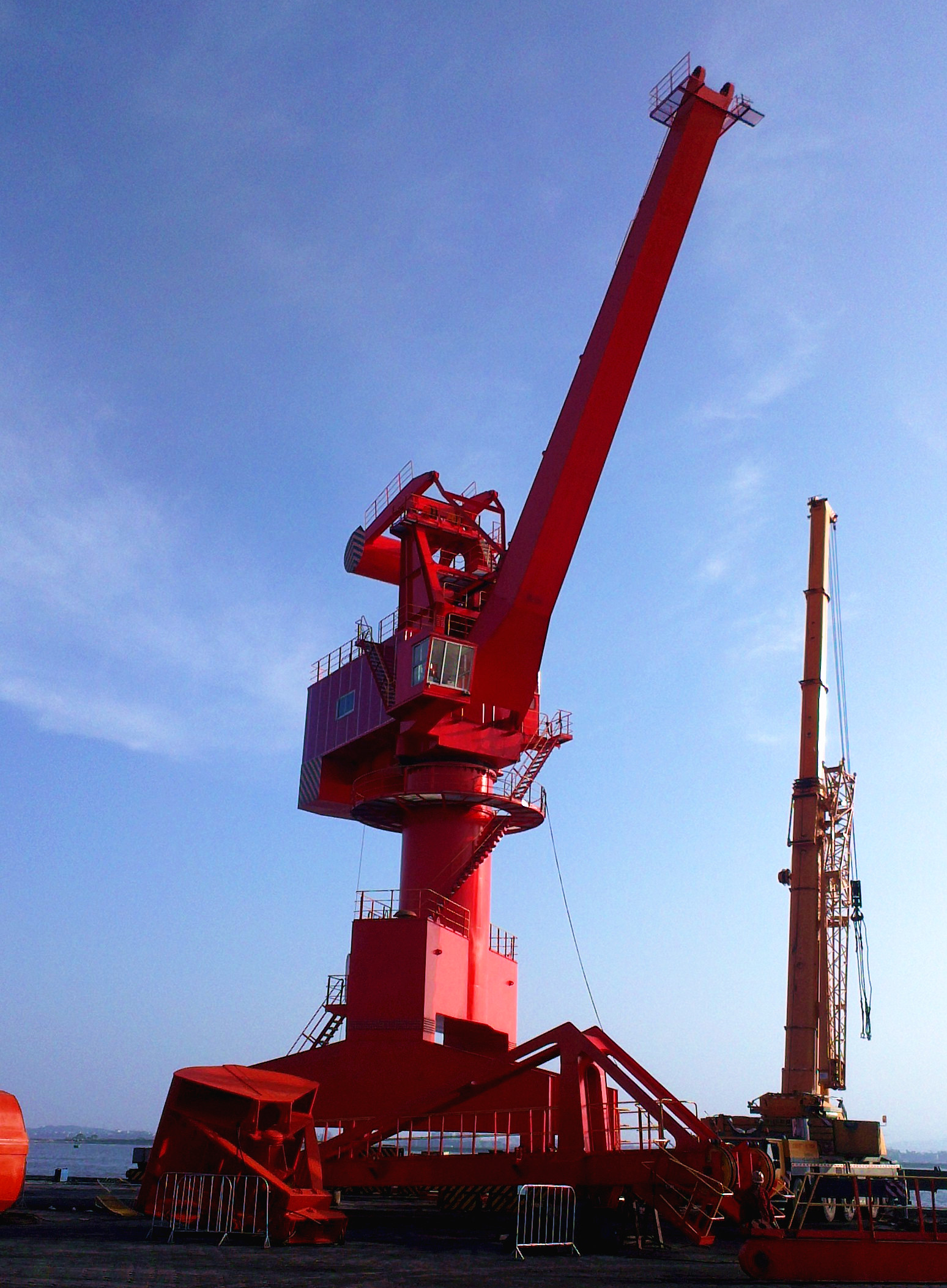 嶄新的25噸門式吊機由捷邦6號運抵港口經(jīng)營公司萬噸級碼頭