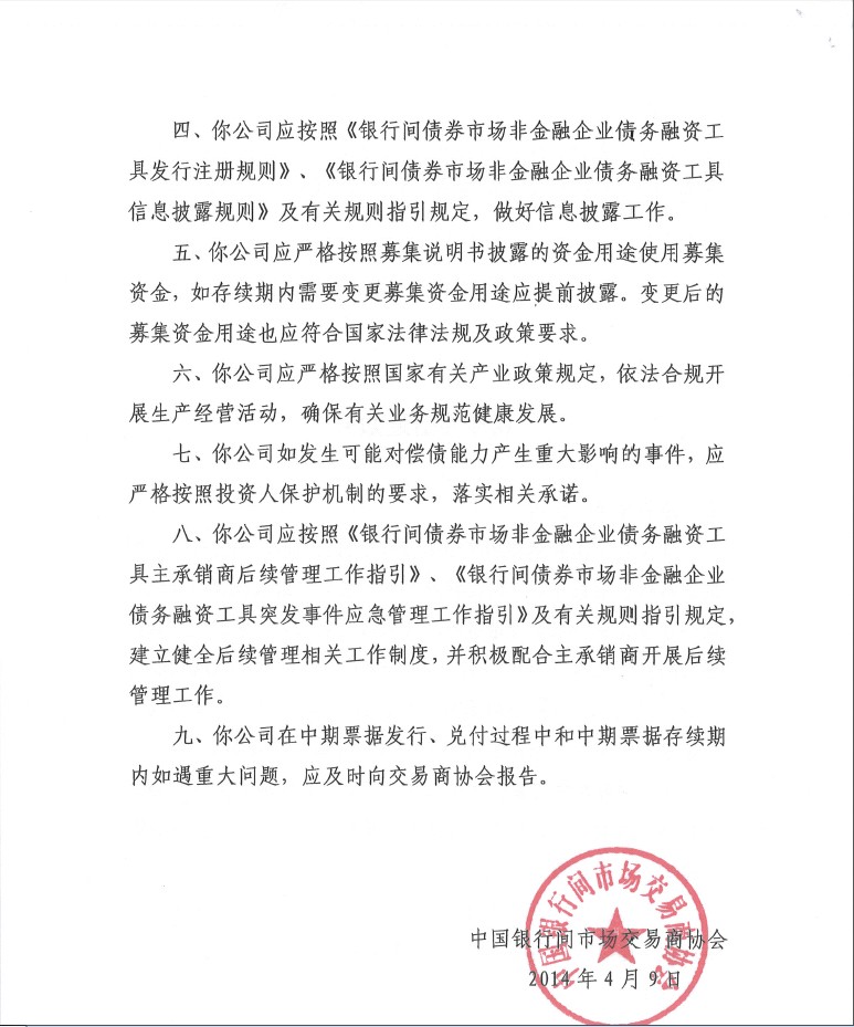 4月14日,茂名港集團(tuán)收到中國(guó)銀行間市場(chǎng)交易商協(xié)會(huì)下發(fā)的《接受注冊(cè)通知書(shū)》,交易商協(xié)會(huì)正式?jīng)Q定接受茂名港集團(tuán)注冊(cè)發(fā)行5億元中期票據(jù)。這不僅為茂名港口項(xiàng)目的建設(shè)提供了堅(jiān)實(shí)的資金保障,而且開(kāi)創(chuàng)了茂名地區(qū)企業(yè)融資創(chuàng)新的先河,將對(duì)茂名市企業(yè)開(kāi)拓直接融資市場(chǎng)具有重大影響。