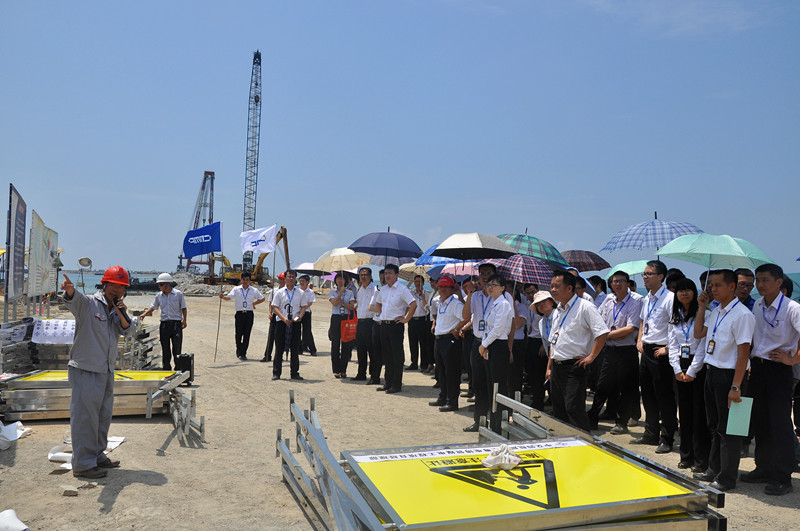 在胡軍董事長的帶領(lǐng)下,調(diào)研隊深入博賀灣大道、博賀新港區(qū)防波堤、博賀粵電煤炭碼頭、博賀粵電發(fā)電廠等施工現(xiàn)場,詳細(xì)了解各項重大工程的進(jìn)展情況。每到一個項目的建設(shè)現(xiàn)場,胡軍董事長都充滿激情地和大家分享其規(guī)劃、定位、發(fā)展方向等內(nèi)容,力求每一位干部職工都清楚茂名港的未來所在。他指出茂名博賀灣、博賀新港區(qū)承載著茂名港崛起的夢想,這里就是茂名港集團(tuán)的主戰(zhàn)場,是我們的希望和未來。調(diào)研組在每個項目的建設(shè)現(xiàn)場,都看到挖掘機(jī)、推土機(jī)、起重機(jī)在轟鳴,一輛輛運土石車川流不息,宏大的建設(shè)場面,熱火朝天的景象,鼓舞人心。何志亮,是港口經(jīng)營公司的老職工,見證了茂名水東港幾十年的發(fā)展歷程,他參加調(diào)研后,他感慨地說:“這樣宏大的建設(shè)場景,我在茂名從來沒有見過,茂名港集團(tuán)大有所為!”