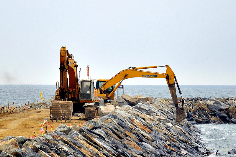 目前,博賀灣大道工程完成主線軟基換填1220米,完成主線復(fù)合地基500米合水泥攪拌樁29000根,完成一側(cè)便道2500米,兩側(cè)圍堰5000米;橋梁工程的制梁場正在規(guī)劃中;排水工程鋪設(shè)完成污水管、雨水管各1200米。博賀新港區(qū)防波堤工程東防波堤累計完成堤心石推填量10萬m3,推填長度近600m;粵電煤炭碼頭防波堤正進(jìn)行石料拋填是施工,已推進(jìn)1200多米;取水口箱涵基槽開挖工作已完成;3.5萬噸碼頭基槽拋石1740m3;煤炭堆場正在推填。粵電博賀發(fā)電廠項目基樁工程已基本完成,鍋爐鋼結(jié)構(gòu)已開始安裝,計劃于2015年底投產(chǎn)。