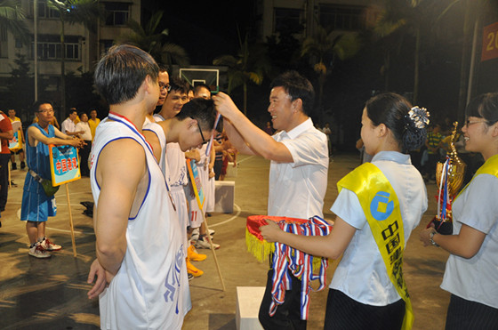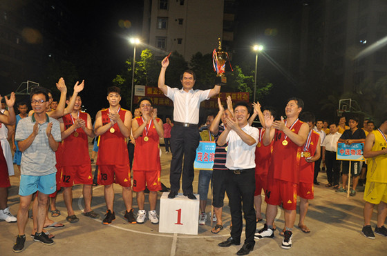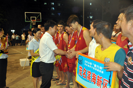 6月19日21:30,2014“建行杯”茂名港男子籃球邀請賽頒獎儀式在市文明南路銀苑籃球場舉行,茂名市副市長、茂名濱海新區(qū)黨工委書記楊潤貴,濱海新區(qū)副主任、茂名港集團董事長胡軍,濱海新區(qū)副主任高莉,建行茂名分行行長米晉湘以及各參賽單位相關(guān)領(lǐng)導出席了閉幕式。