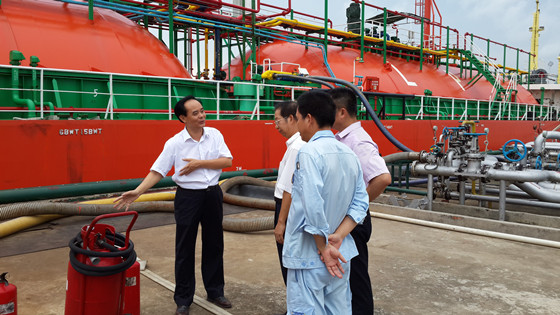 當(dāng)天,適逢茂名市港航管理局安全大檢查組副組長(zhǎng)韓名蛟一行5人到鑫龍公司進(jìn)行安全生產(chǎn)大檢查暨“安全生產(chǎn)月”活動(dòng)督查,鑫龍公司董事長(zhǎng)、總經(jīng)理劉乃英以及副總經(jīng)理呂龍輝等各部門負(fù)責(zé)人陪同登上了該船參觀指導(dǎo),并就公司的安全作業(yè)防范措施進(jìn)行了詳細(xì)解說(shuō)。在檢查匯報(bào)會(huì)議上,鑫龍公司董事長(zhǎng)、總經(jīng)理劉乃英向檢查組詳細(xì)匯報(bào)了石油庫(kù)建設(shè)、運(yùn)行、消防安全、環(huán)境保護(hù)、安全管理以及汛雨期防封、防雷、防靜電的預(yù)防措施等六大項(xiàng)情況,并詳細(xì)說(shuō)明了公司的自查自糾情況。韓名蛟對(duì)鑫龍公司安全大檢查的開展表示了肯定,對(duì)公司安全大檢查的臺(tái)賬資料整理工作表示了高度的贊揚(yáng)。
