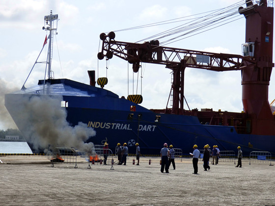 根據(jù)公司年度安全演練計劃,并結(jié)合“安全生產(chǎn)月”的開展,港口經(jīng)營公司于6月27日在萬噸級碼頭作業(yè)區(qū)、應(yīng)急通道以及港區(qū)大門進行了港口設(shè)施火災(zāi)以及危險貨物事故應(yīng)急演練,進一步檢驗并提高了安保人員的應(yīng)急處置能力。